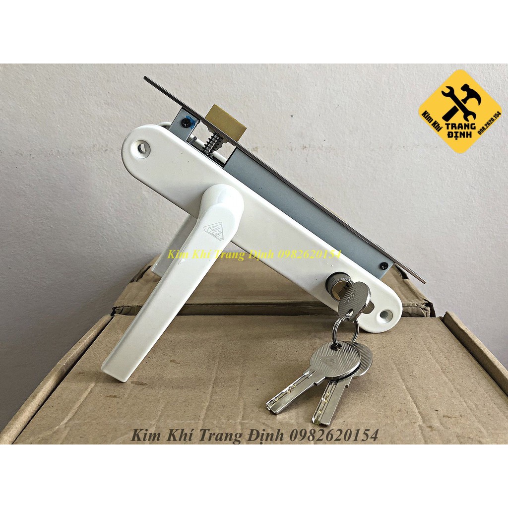 [Ốp Tròn] Khoá tay gạt cửa nhôm hệ việt pháp 4500, cửa nhựa lõi thép Golking màu trắng