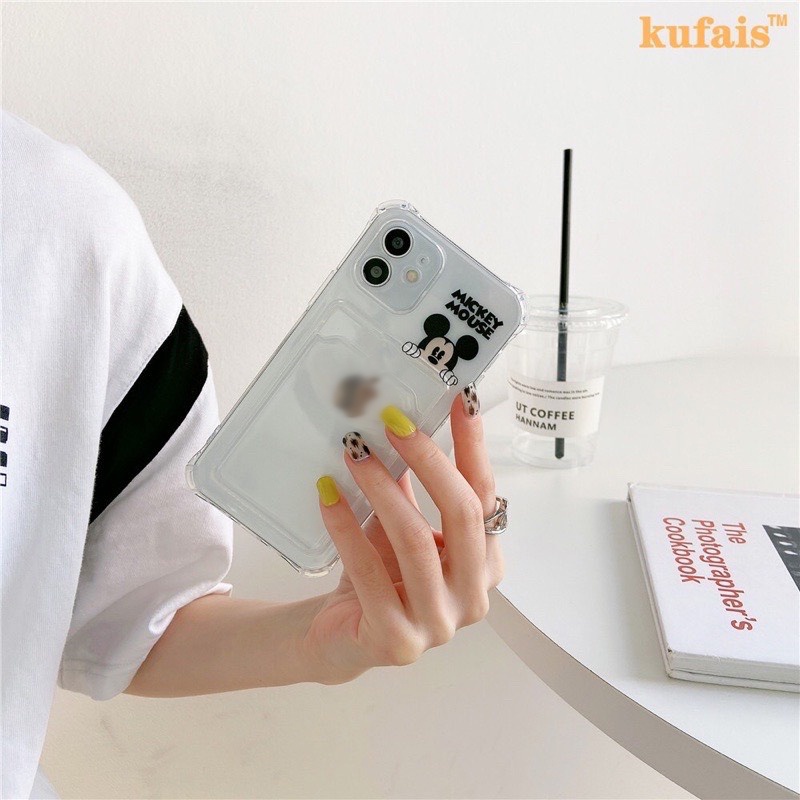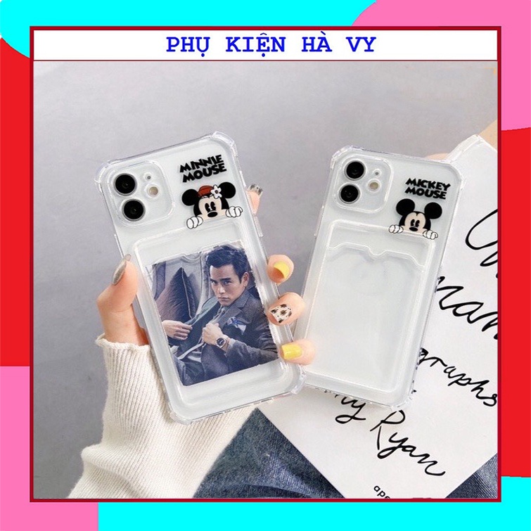Ốp túi in hình micky cute trong suốt chống sốc X,Xs,Xsmax,7Plus,8Plus/xr/12promax/11pro có ngăn ví đựng thẻ tiện dụng