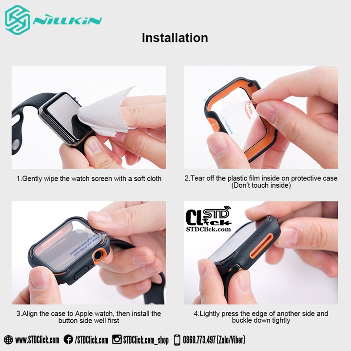 ỐP VIỀN KÈM KÍNH MÀN HÌNH APPLE WATCH SERIES 4 - 5 - 6 - SE NILLKIN CRASHBUMPER CHÍNH HÃNG với thiết kế nhô cao giúp chống trầy màn hình tối đa. Dễ dàng tháo lắp không gây trầy xước thiết bị. Nút bấm êm và nhạy như bấm trực tiếp.
