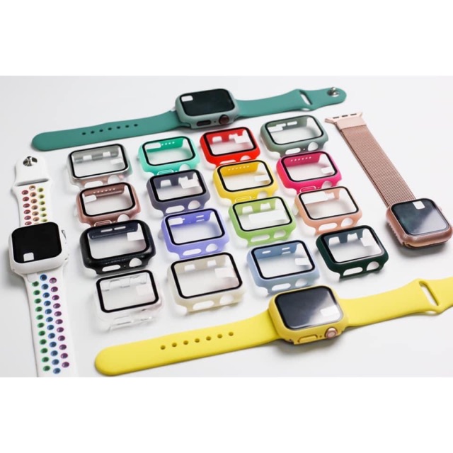 ỐP VIỀN FULL KÍNH CƯỜNG LỰC BẢO VỆ APPLE WATCH Thiết kế 𝟐-𝐢𝐧-𝟏- Case bảo vệ 360° màn hình , body máy chống trầy xước , chống va đập
