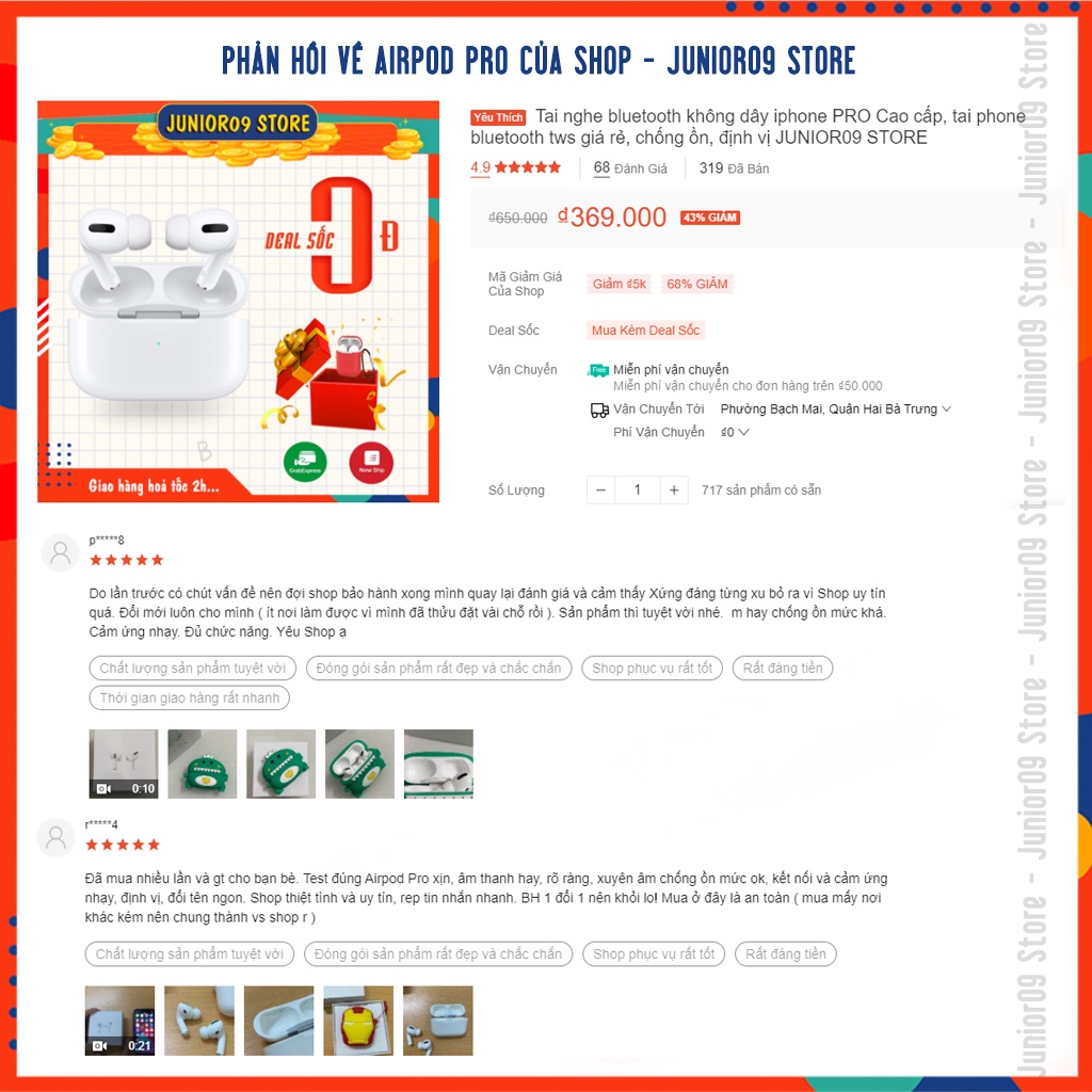 Giới thiệu Ốp vỏ case tai nghe AirPods 2/Pro - Màu ngẫu nhiên - Chống sốc - Chống bẩn - Ôm khít Junior09 Store