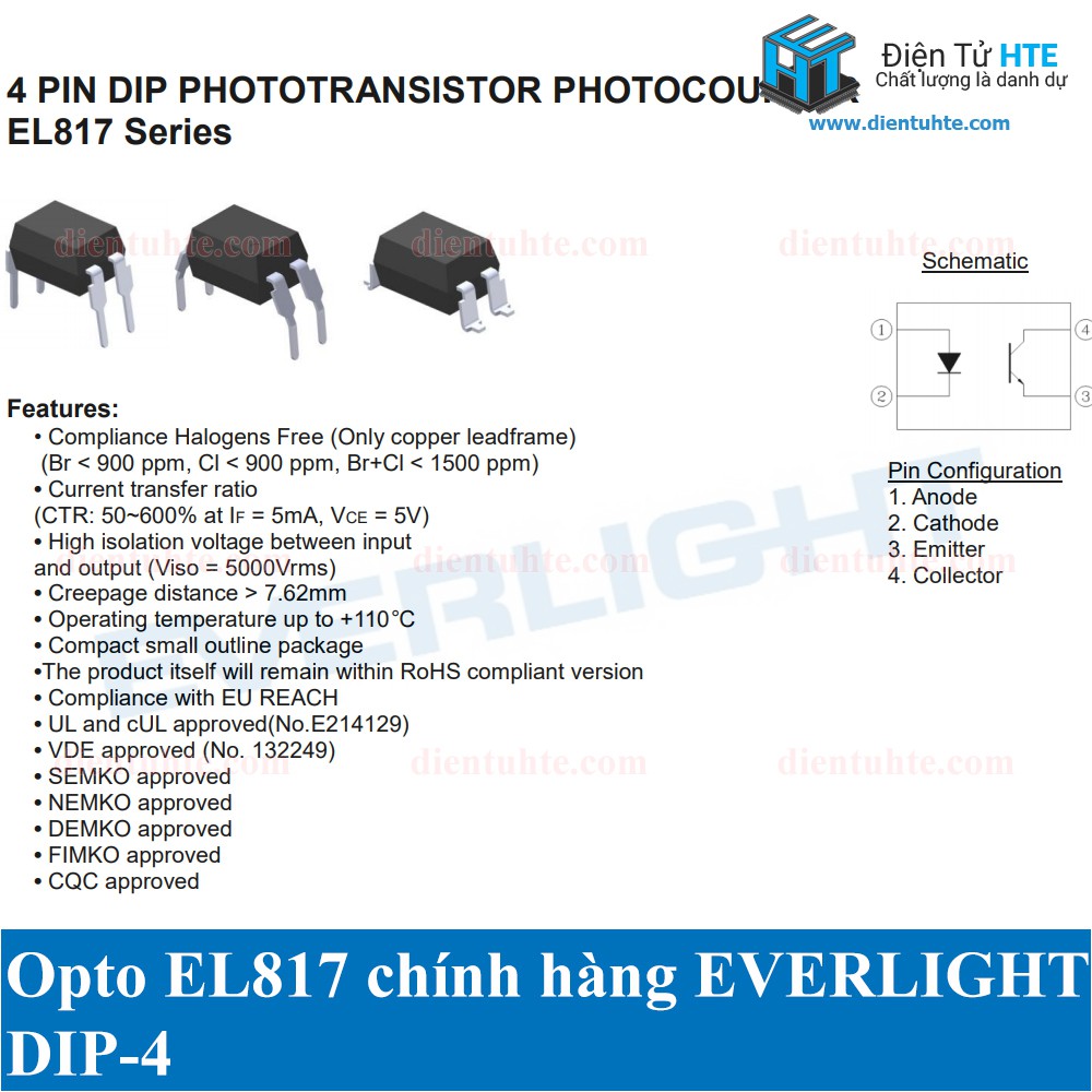 Giới thiệu Opto cách ly quang EL817 DIP-4 EVERLIGHT chính hãng [HTE Quy Nhơn CN2]