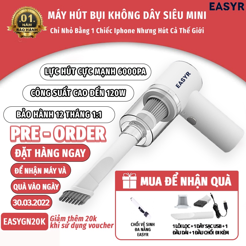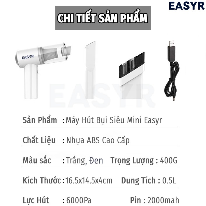 [HÀNG THÁI LAN] MÁY HÚT BỤI CẦM TAY KHÔNG DÂY SIÊU MINI EASYR [CÓ SẴN] HÚT CỰC MẠNH 6000PA - 120W, SẠC BẰNG USB [BH 12T]