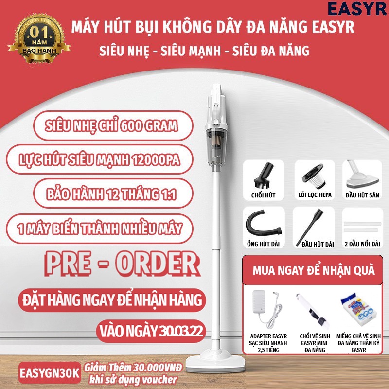 Thiết Bị Điện Gia Dụng > Thiết bị điện gia dụng nhỏ > Máy hút bụi & Thiết bị làm sạch sàn || [ORDER] MÁY HÚT BỤI KHÔNG DÂY CẦM TAY ĐA NĂNG 4IN1 EASYR [BH 1:1] HÚT SIÊU MẠNH 12000PA, SIÊU NHẸ 6Còn hàng