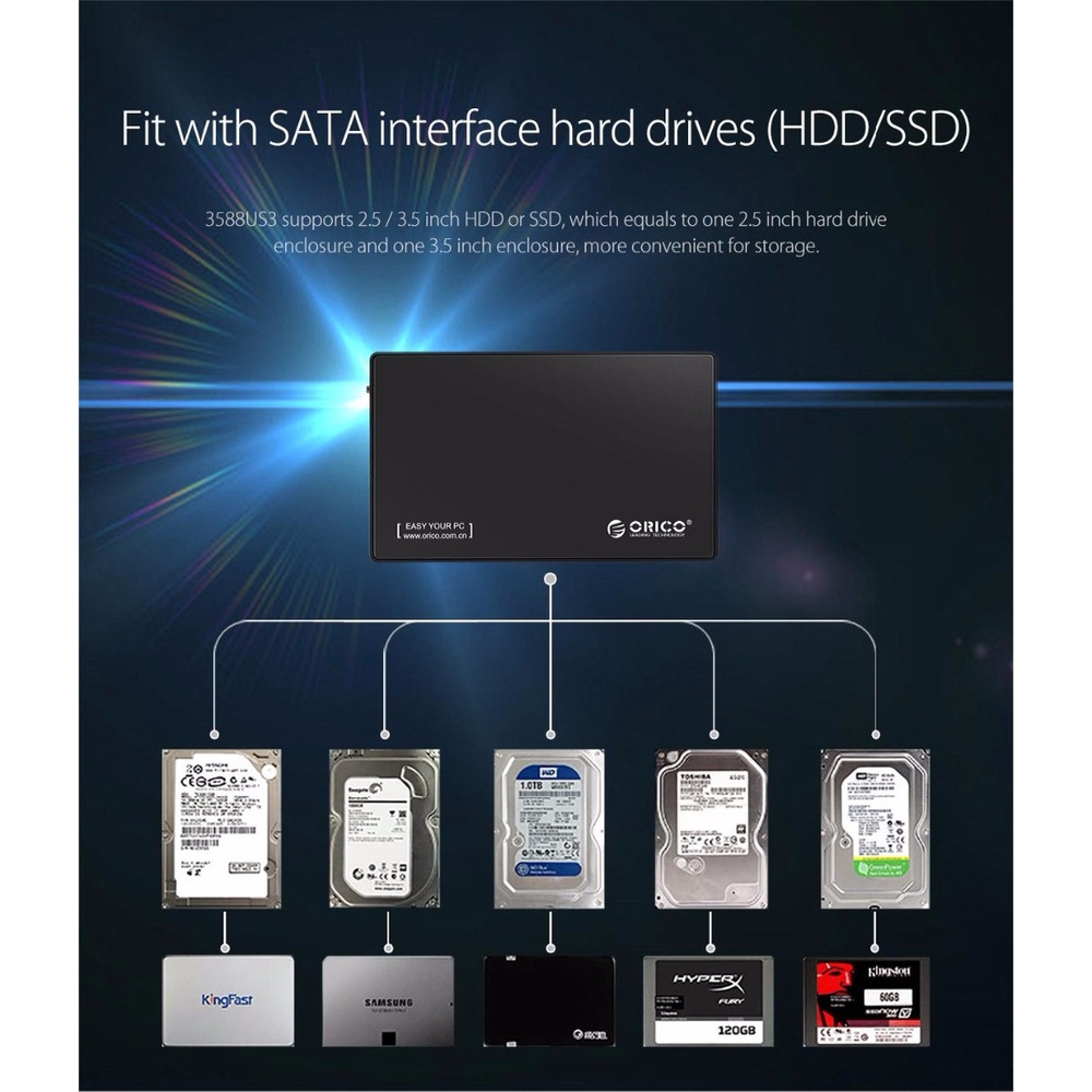 Máy tính & Laptop > Thiết Bị Lưu Trữ > Thiết Bị Đựng Ổ Cứng || ORICO 3588US3 Hộp Đựng Ổ Cứng gắn ngoài HDD Box 3.5 Inch SATA3 USB 3.0 Dùng cho HDD SSD 3.5"/2.5"Còn hàng