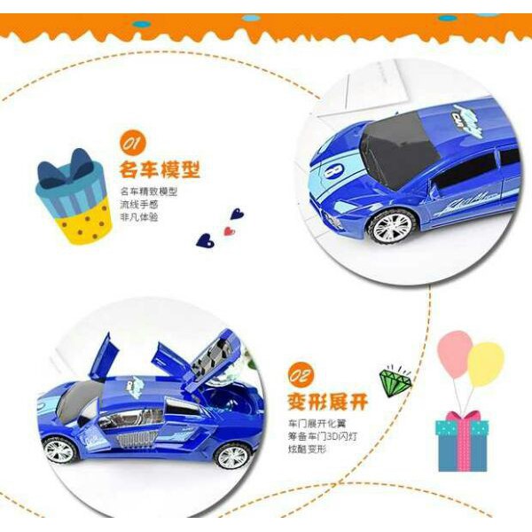Sản phẩm xe oto vừa có thể mở cánh, vừa có thể phát sáng và vừa có thể xoay vòng khiến cho các bé cảm thấy thích thú khi chơi đồ chơi này.
