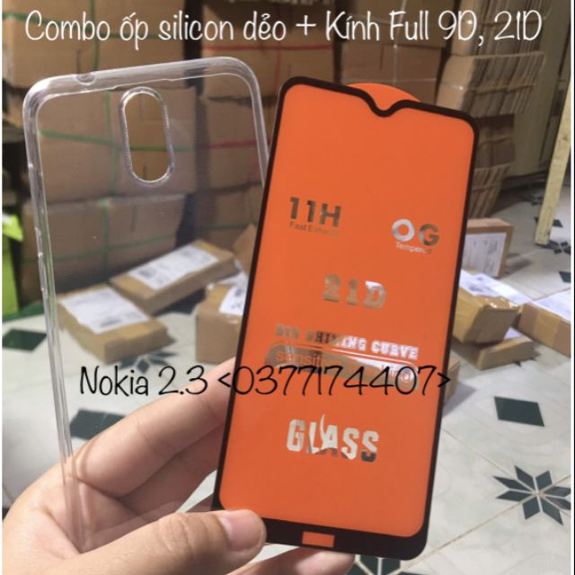 Bộ ốp dẻo TPU + Kính Full màn hình cho Nokia 2.3 bảo vệ máy siêu tốt