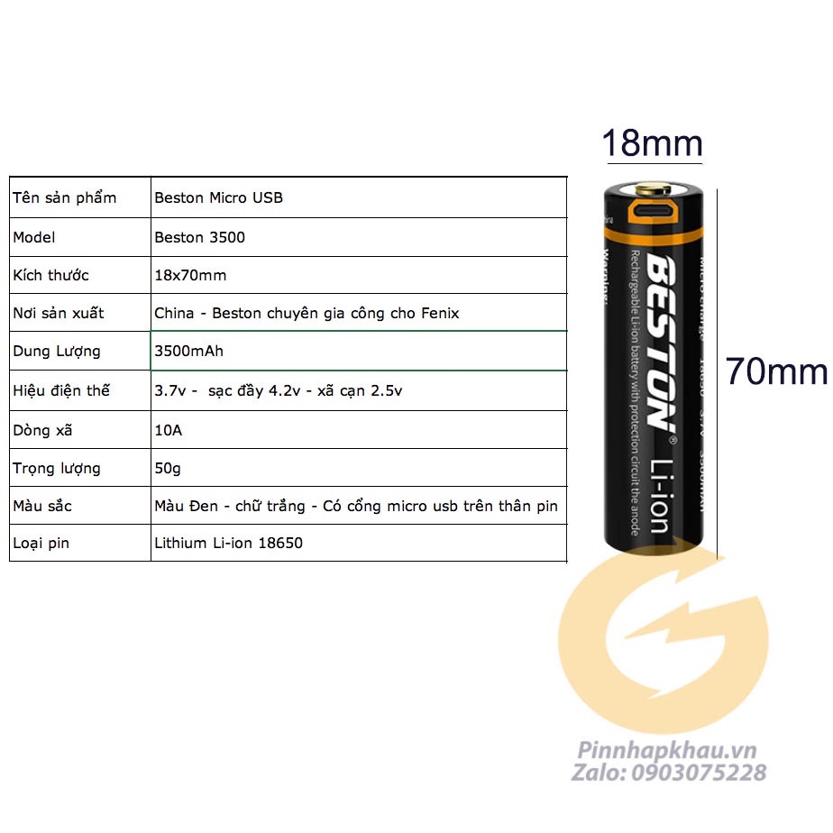 Thiết Bị Điện Gia Dụng > Pin || [P04] Pin sạc có mạch bảo vệ 18650 Beston chính hãng có cổng sạc micro usb ngay trên thân pinCòn hàng