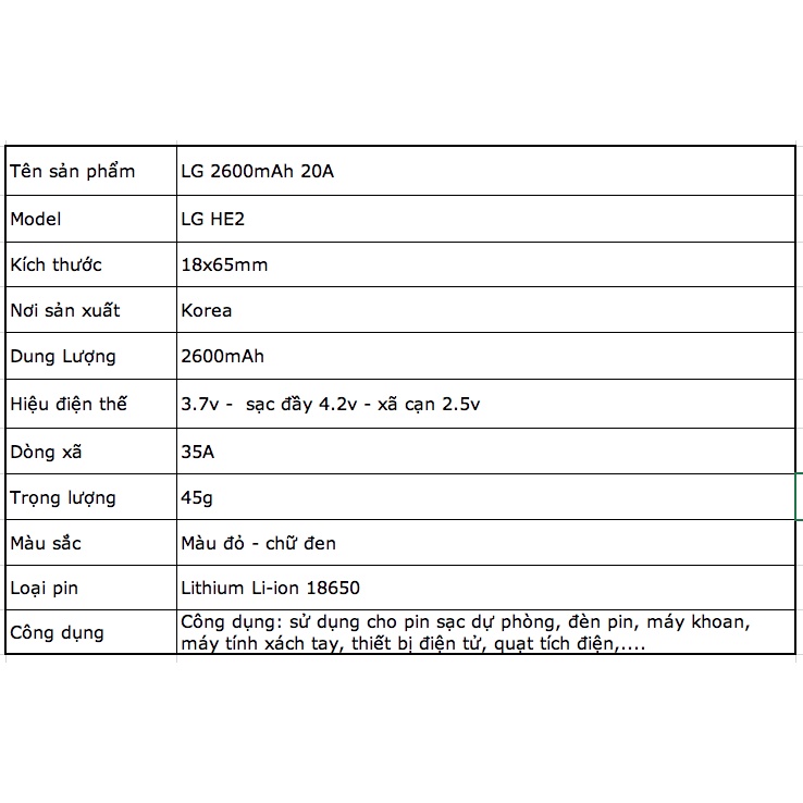 Thiết Bị Điện Gia Dụng > Pin || [P10] Cell Pin 18650 Korea LG HE2 xả 20Ampe mới 100% dung lượng thật 2800mah dùng cho thiết bị cầm tay, quạt, laptopCòn hàng