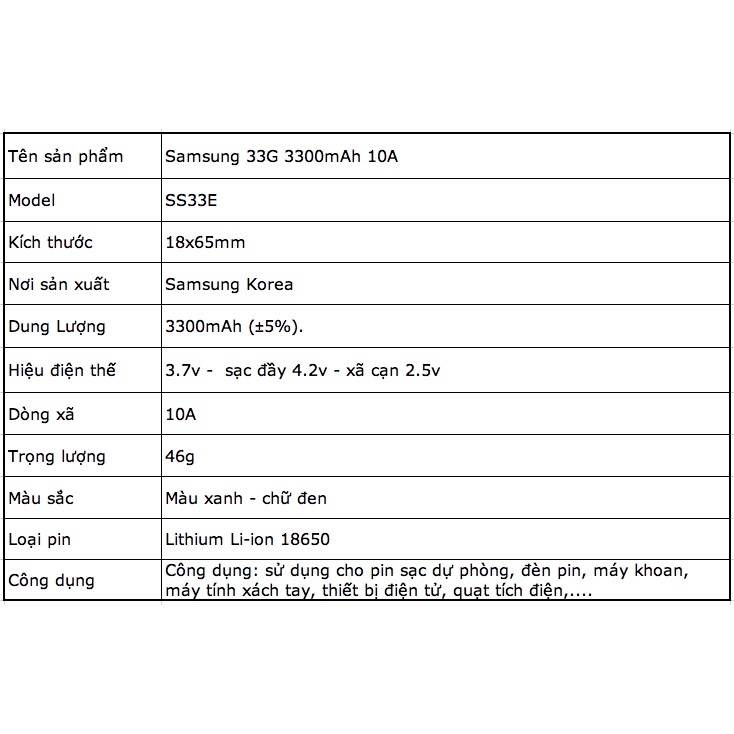 Thiết Bị Điện Gia Dụng > Pin || [P31] Pin 18650 Korea Samsung 33G 3300mah xã cao 15A mới 100% cam kết đúng thông sốCòn hàng