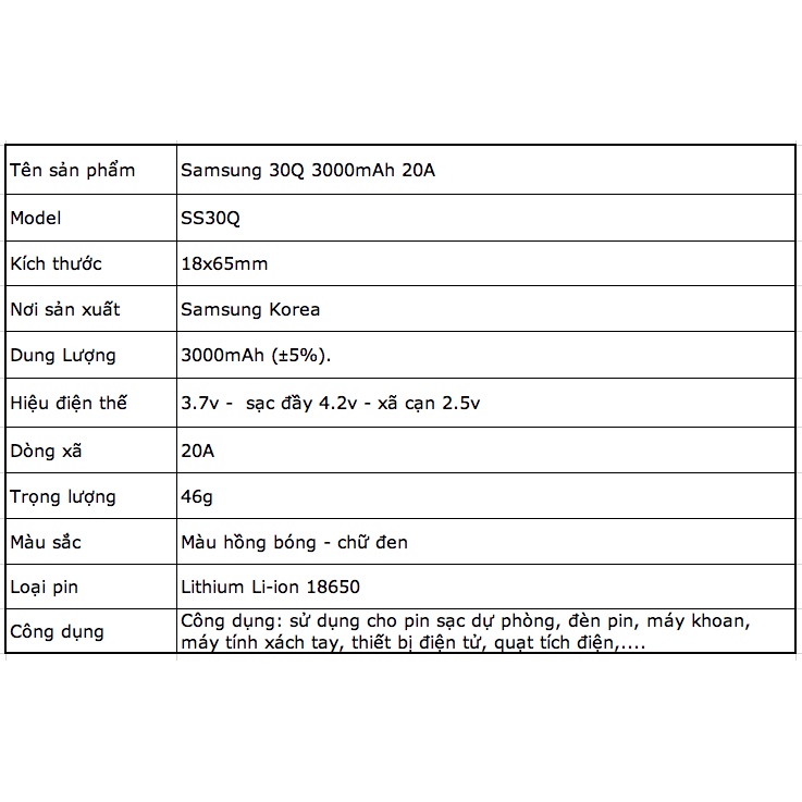 Giới thiệu [P32] Pin 18650 Korea Samsung 30Q 3000mah xã 15A mới 100% dùng cho thiết bị cầm tay, quạt, laptop, khoan