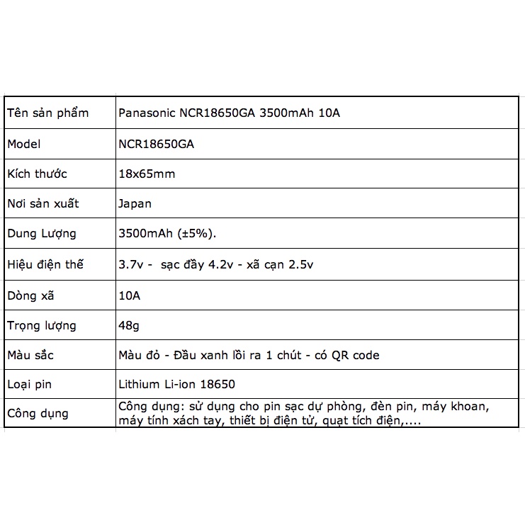 Thiết Bị Điện Gia Dụng > Pin || [P61] Pin sạc 18650 Panasonic NCR18650GA Dung lượng 3500mah xã 10A chuẩn nhập khẩu, Pin thị trường Japan, đầu pin lồi raCòn hàng