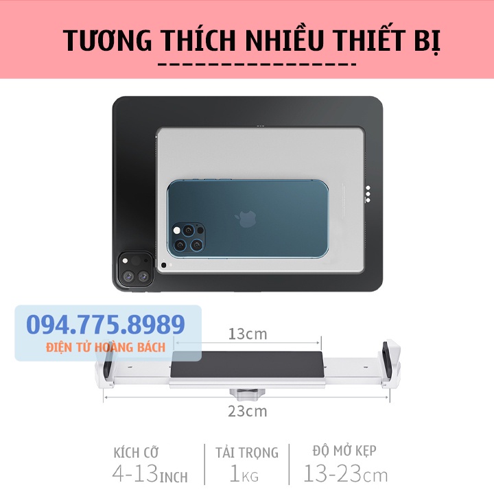 ✅ Kích thước tablet cần phù hợp với độ rộng của kẹp: