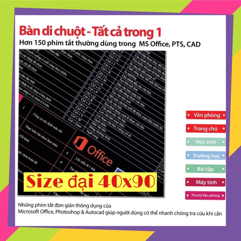 pad chuột mousepad lót chuột phím tắt công thức văn phòng bản tiếng việt