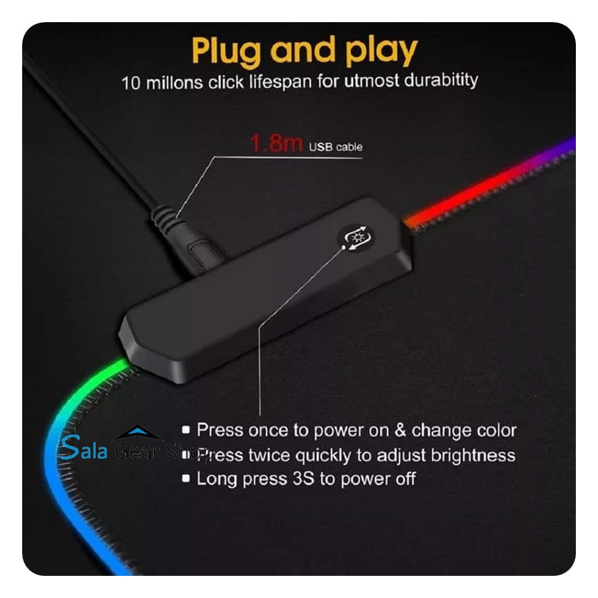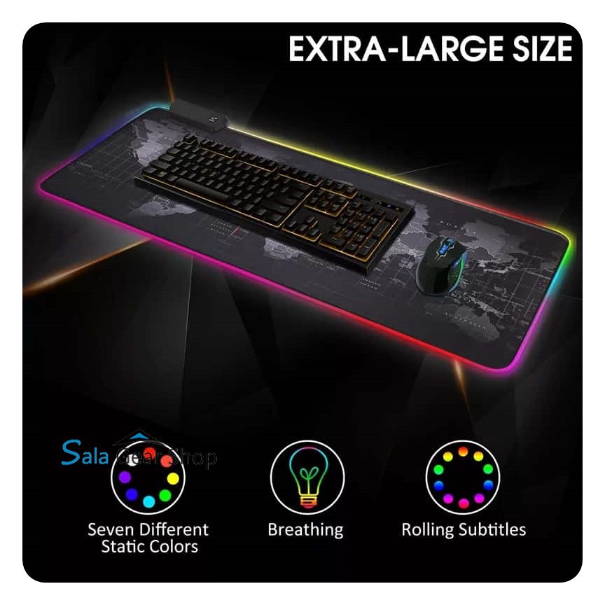 -Bàn di chuột, miếng lót chuột, mouse pad chơi game có đèn led RGB giúp bạn vừa thoải mái làm việc chơi game, vừa trang trí góc học tập và làm việc theo xu hướng RGB-Kick Thước : 800x300x4mm