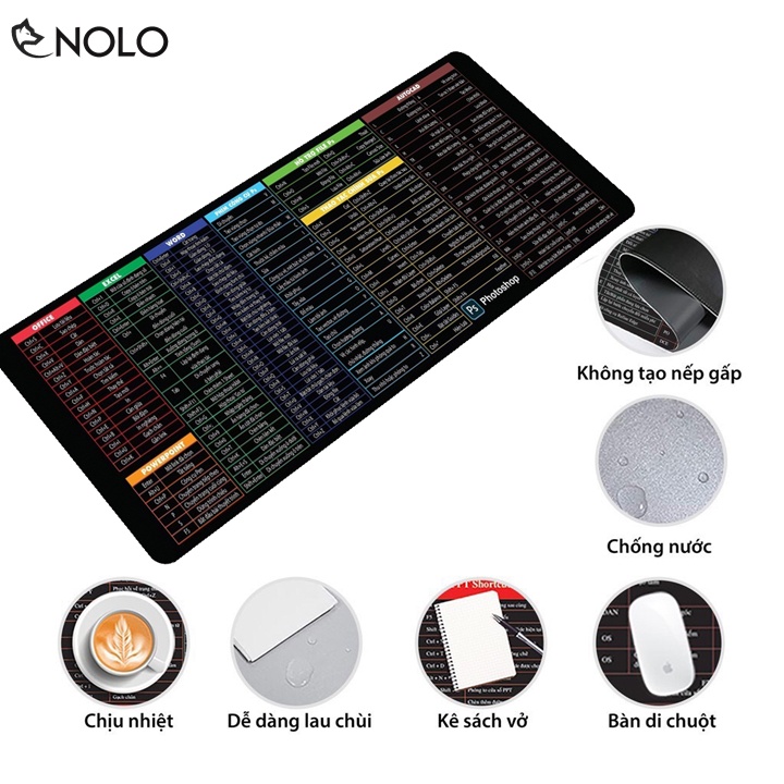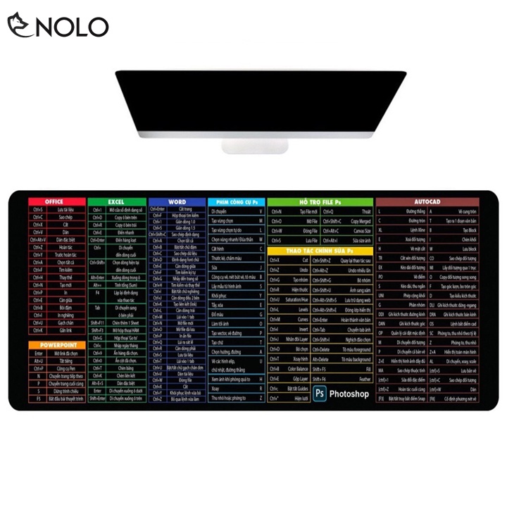 Giới thiệu Lót Chuột Lớn Kích Thước 30x80cm Dày 3 Ly Bề Mặt In 3D Không Phai 175 Phím Tắt Lệnh Của Office, Word, Photoshop