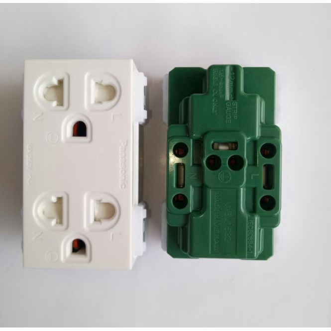 Giới thiệu [PANASONIC] Ổ cắm đôi có màn che và dây nối đất Wide WEV1582SW- Hàng chính hãng BH 24 tháng