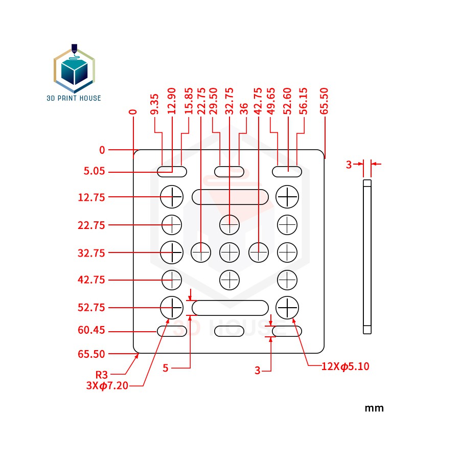 - Kích thước: dài 65mm, rộng 65mm, cao 28mm. Dày 3mm