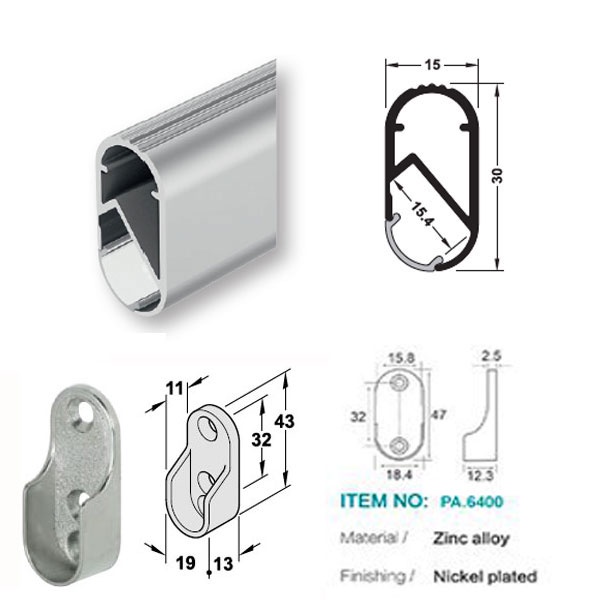 Sản phẩm pát đỡ dành cho thanh treo nhôm ovan, lắp đặt thanh chắn móc treo quần áo