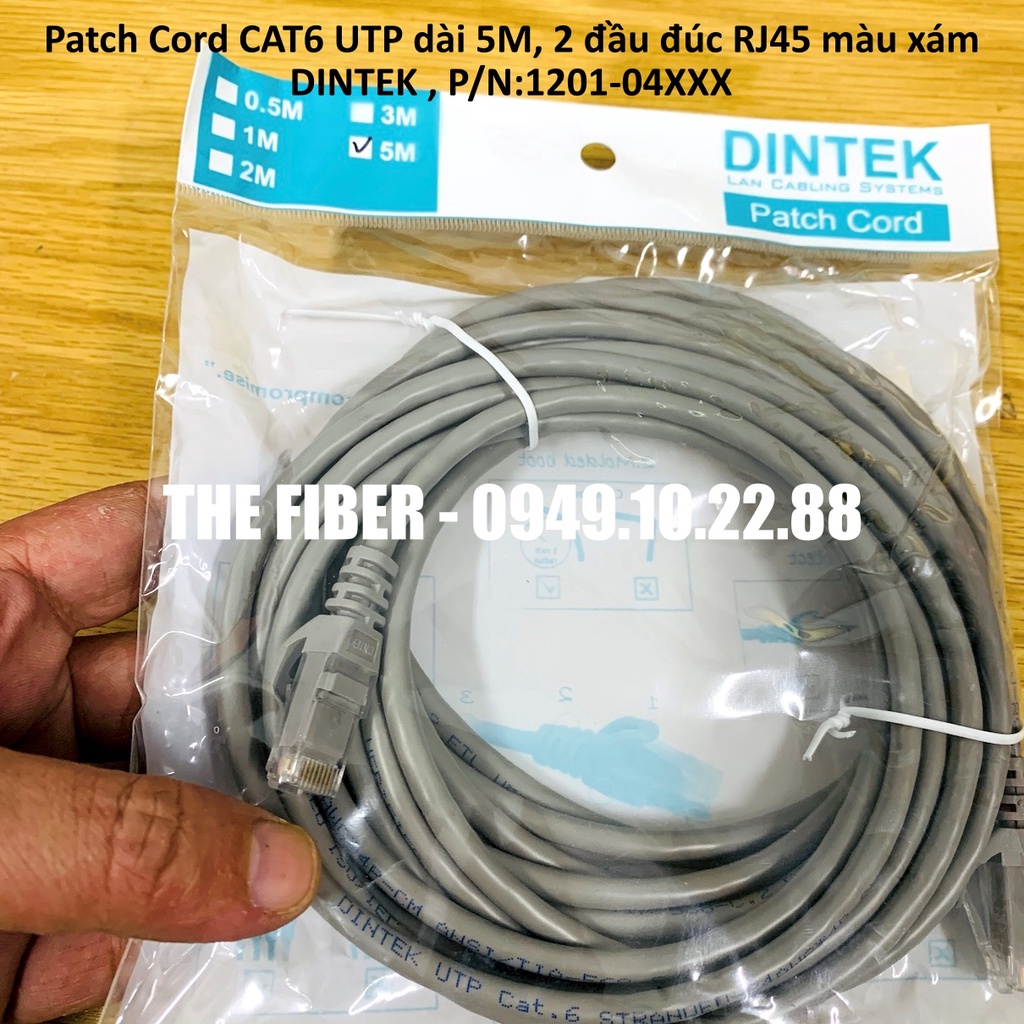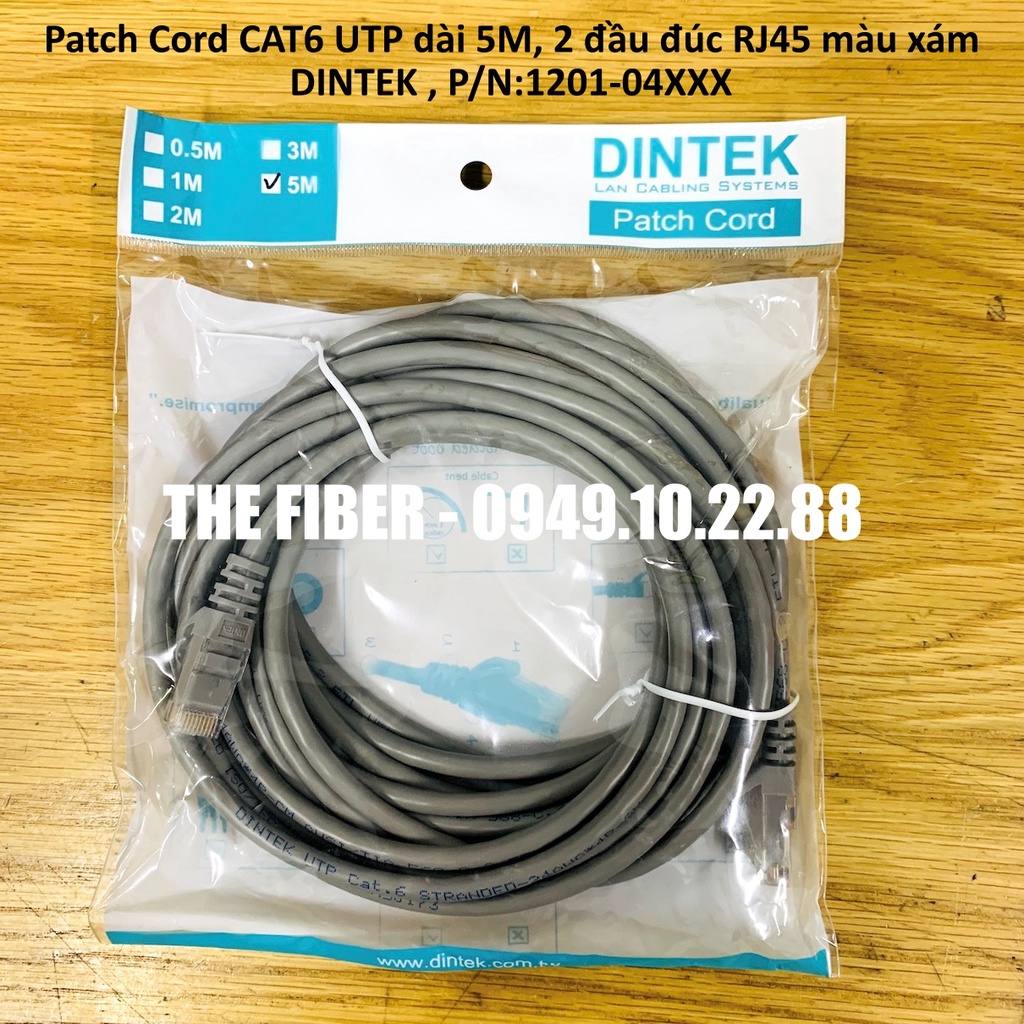 Máy tính & Laptop > Thiết Bị Mạng > Khác || Patch Cord CAT6 UTP dài 5M, 2 đầu đúc RJ45 màu xám - DINTEK , P/N:1201-04XXXCòn hàng