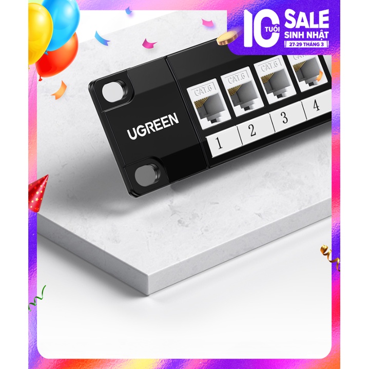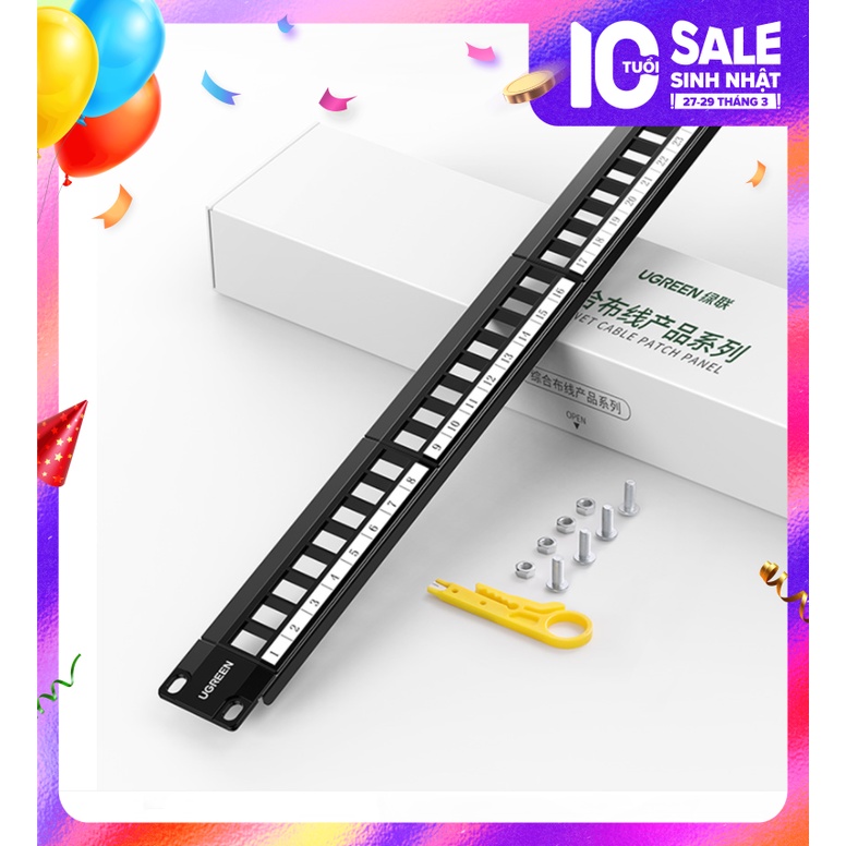Thanh Patch Panel UTP Ethernet Cat5e và Cat6 24 cổng kim loại UGREEN NW154 80445Áp dụng cho tủ 19U