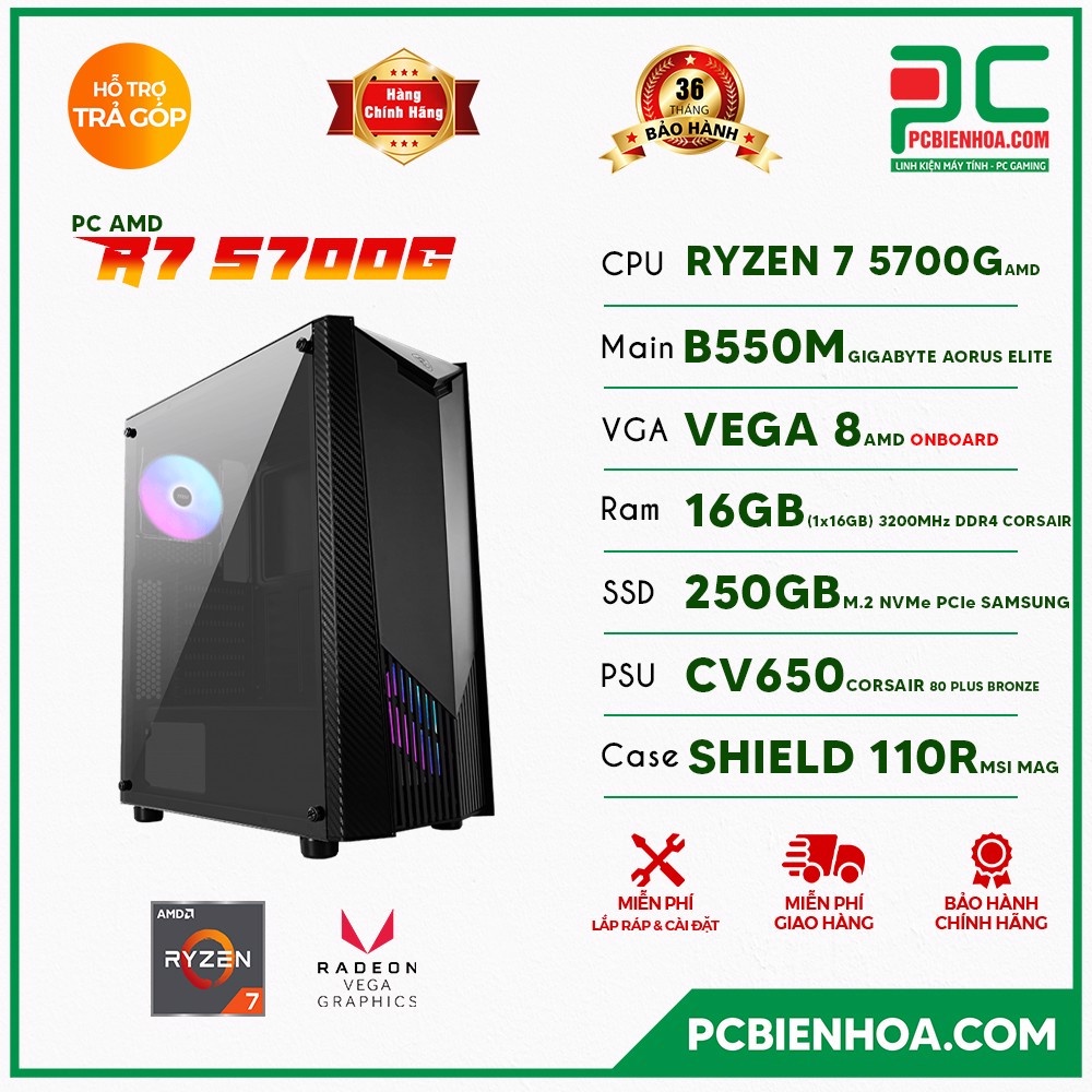 Giới thiệu PC AMD R7 5700G ( RYZEN 7 5700G / B450 / 16GB / 250GB )