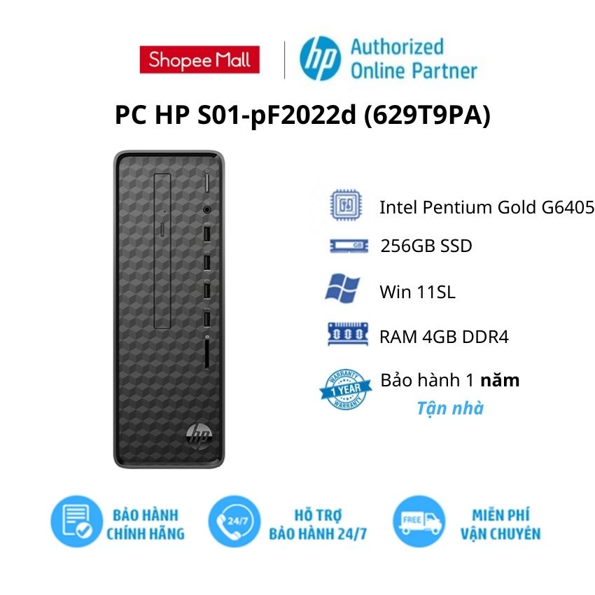 Giới thiệu PC HP S01-pF2022d (629T9PA)/Intel Pentium Gold G6405/ RAM 4GB/ 256GB SSD/ K&M/ Win 11SL/ 1Yr