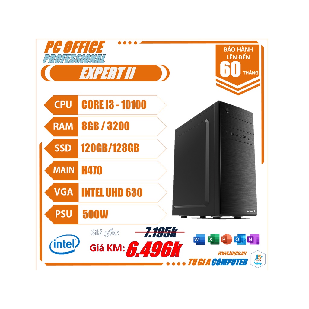👍VP12.5 Cấu hình PC Office Expert II (i3-10100/ Ram 8Gb/ SSD 120Gb) gồm :