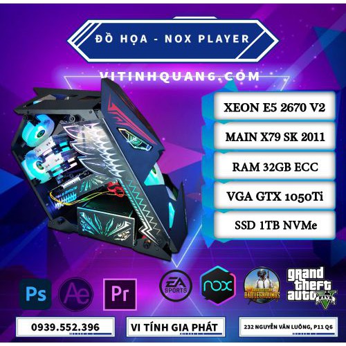 Bộ PC Xeon E5 2670 V2 Cân trên 10 Nox, Render Video, Đồ Họa 3D