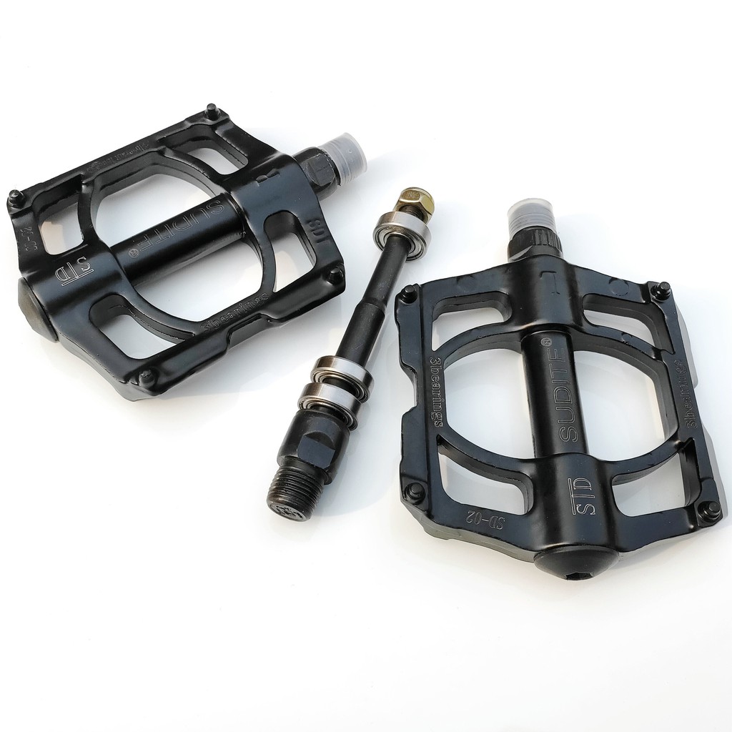 Chất liệu: Hợp kim nhôm, sử dụng 3 bạc đạn nên rất trơn, trắc, không có độ giơ, kết cấu chống nước xâm nhập tốt, mặt pê đan rộng, để chân rất vững khi đạp, phù hợp với các dòng xe đạp.Màu sắc: Màu đen
