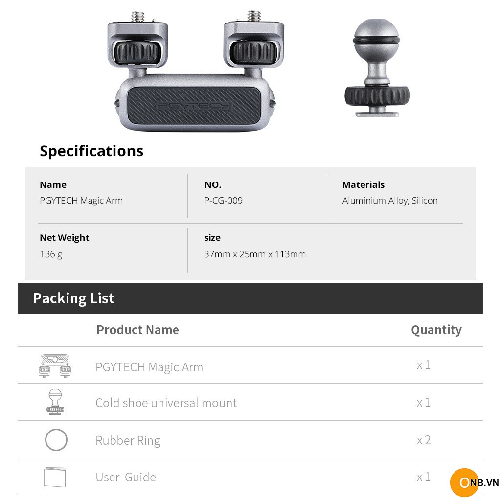 Giới thiệu Pgytech Magic Arm - Tay nối dài 2 ball head ốc 1/4 đa năng