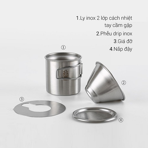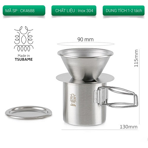 Bộ pha cà phê ngoài trời Inox 304 Made in TSUBAME phễu wave 155