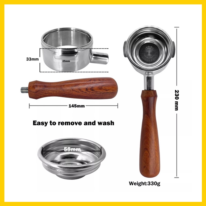 Thông tin tay pha không đáy Welhome | 58mm Bottomless Portafilter Naked Portafilter+ Đường kính trong: 62mm (lắp vừa giỏ lọc 58mm)