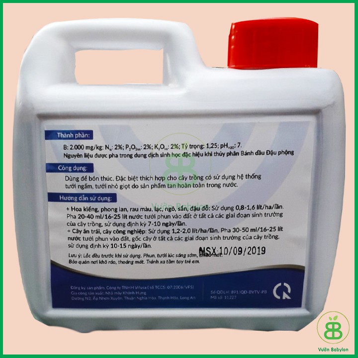 N: 2%, P2O5: 2% ; K2O: 2% ; B: 2000 ppm.