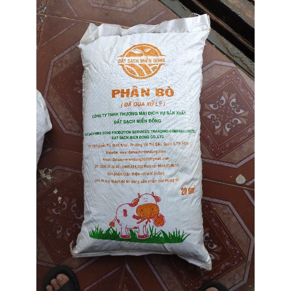 phân bò đã được ủ hoai mục, bao 20 lít của cty miền đông. tùy theo độ ẩm nhập hàng mà khối lượng sẽ giao động từ 5.5-9kg.dùng để bón rau, cây ăn trái, cây kiểng,...
