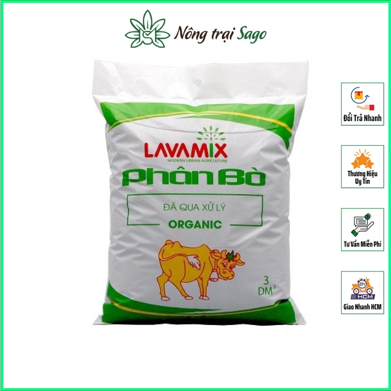 Phân Bò Hữu Cơ LAVAMIX Đã Qua Xử Lý - Không Mùi, Giàu Đạm Hữu Cơ, Giúp Cây Phát Triển (túi 3dm3) - Nông Trại Sago