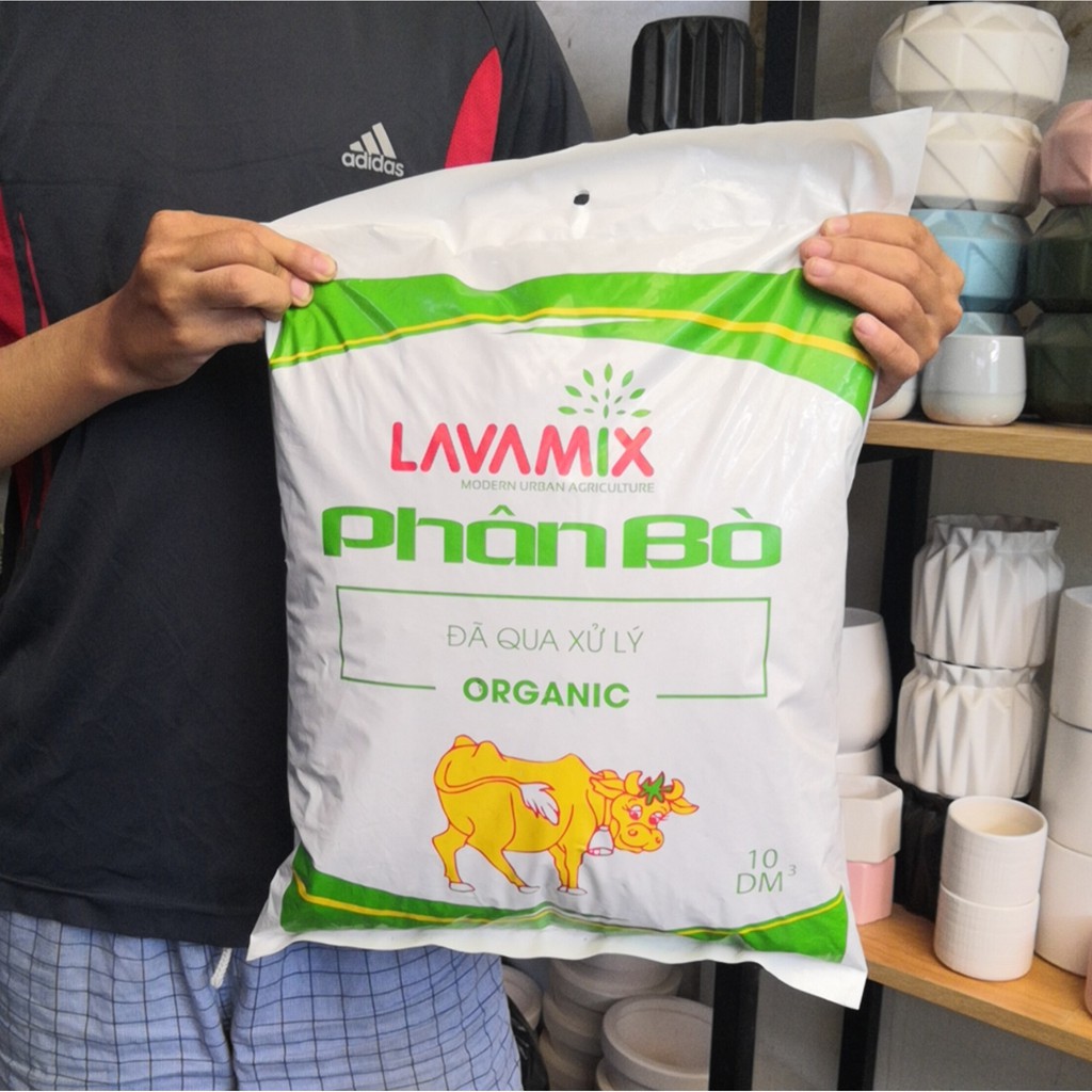 Phân Bò Hữu Cơ LAVAMIX Lớn (10 dm3) đã qua xử lý, không mùi hôi trồng cây ăn trái, rau mầm, cây cảnh nội thất