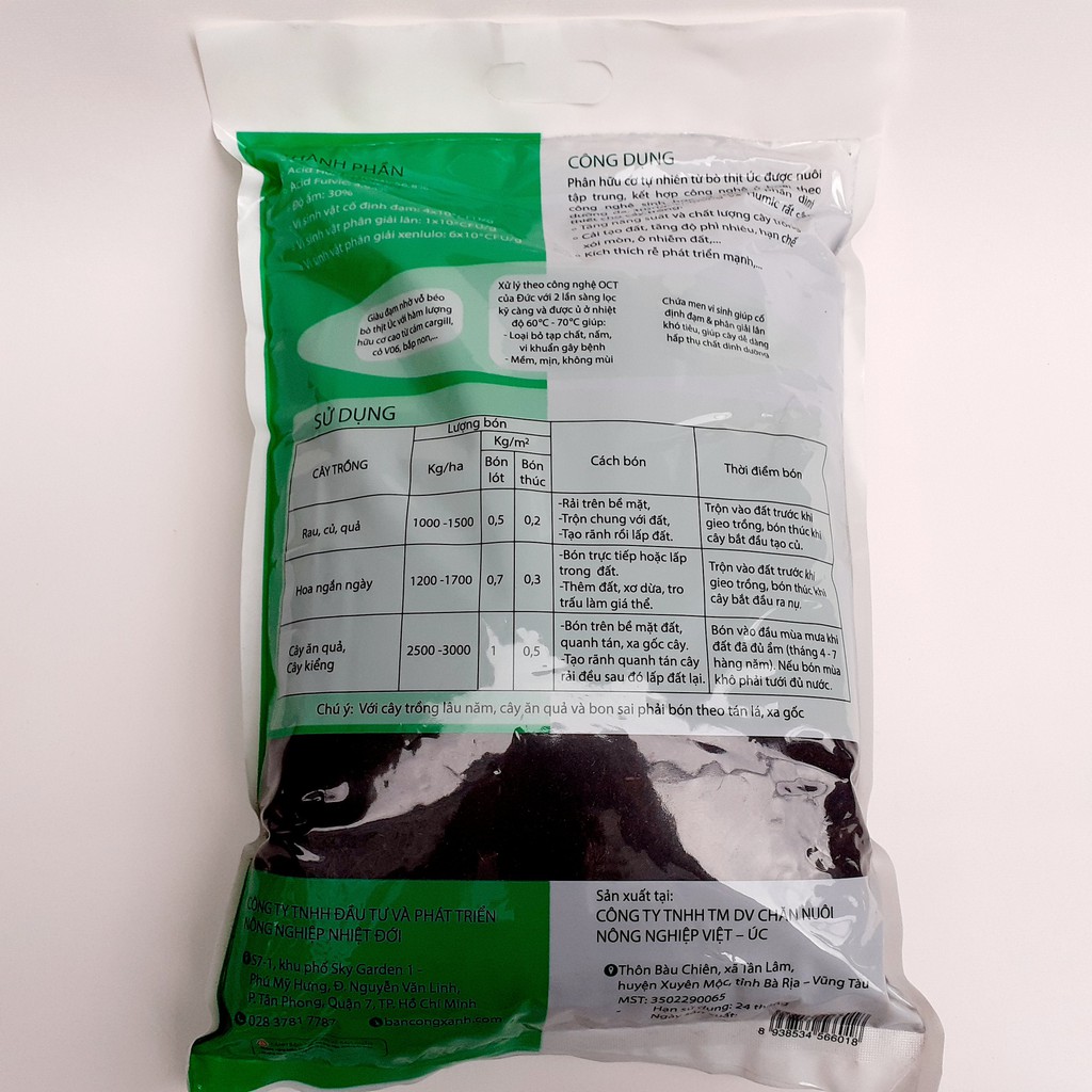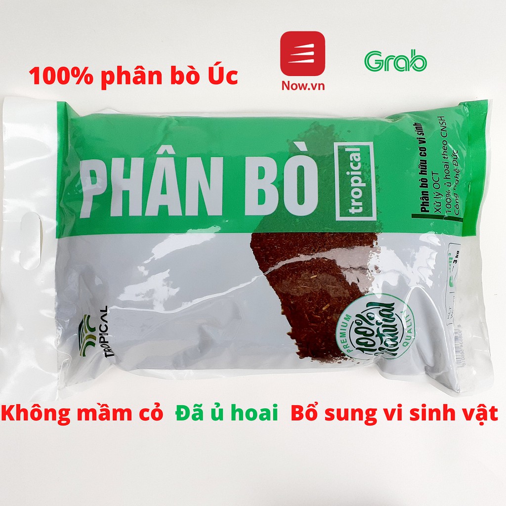 ĐẶC ĐIỂM: phân bò Tropical được chọn từ nguồn phân bò Úc nuôi tại trang trại Việt- Úc, giống bò Úc được nuôi bằng thức ăn giàu đạm như cám hữu cơ Cargill, cỏ VO6, bắp non, không nhiễm kim loại nặng và thức ăn cỏ được xử lý mầm cỏ trước khi cho bò ăn. Chính vì vậy, đây là nguồn phân bò rất chất lượng bởi không có kim loại nặng, mầm cỏ.