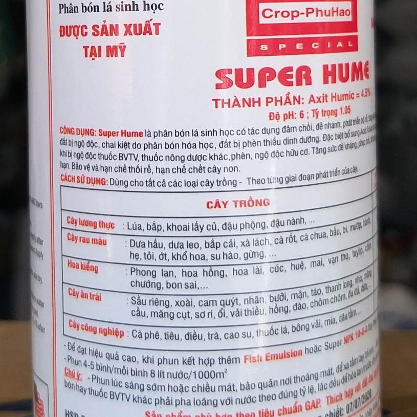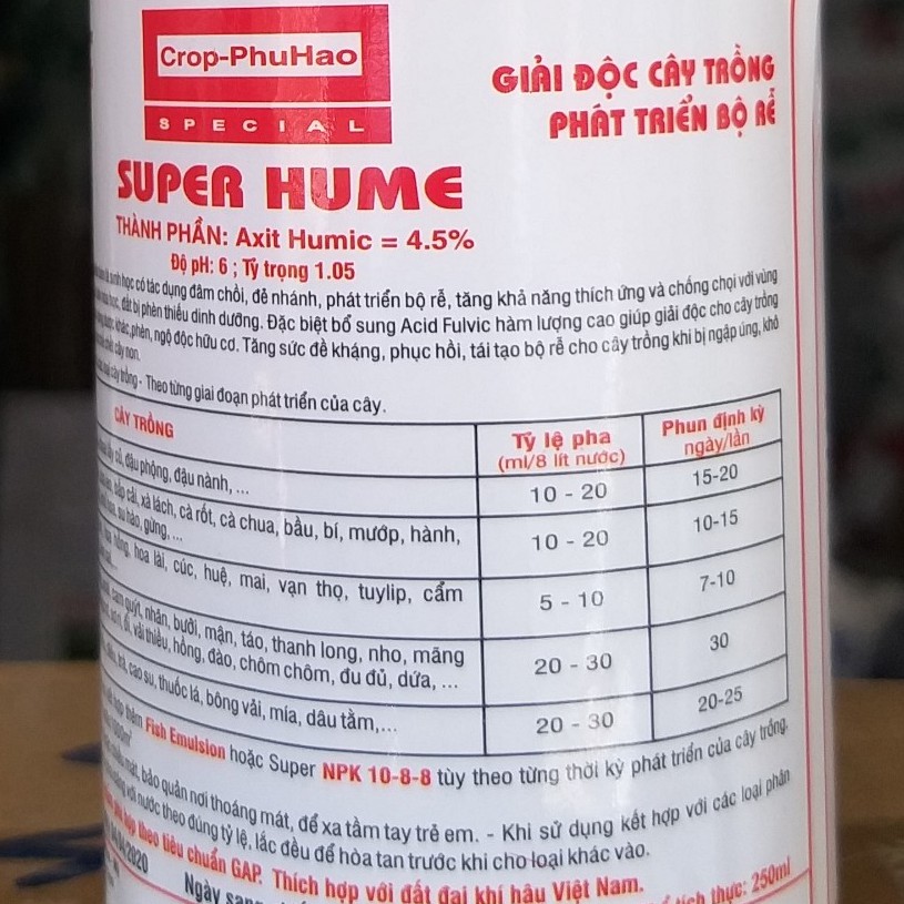 Giới thiệu Phân Bón Axit Humic Mỹ SUPER HUME (250ml), Acid Humic Sinh Học - ra rễ mạnh, tăng trưởng nhanh