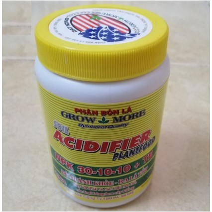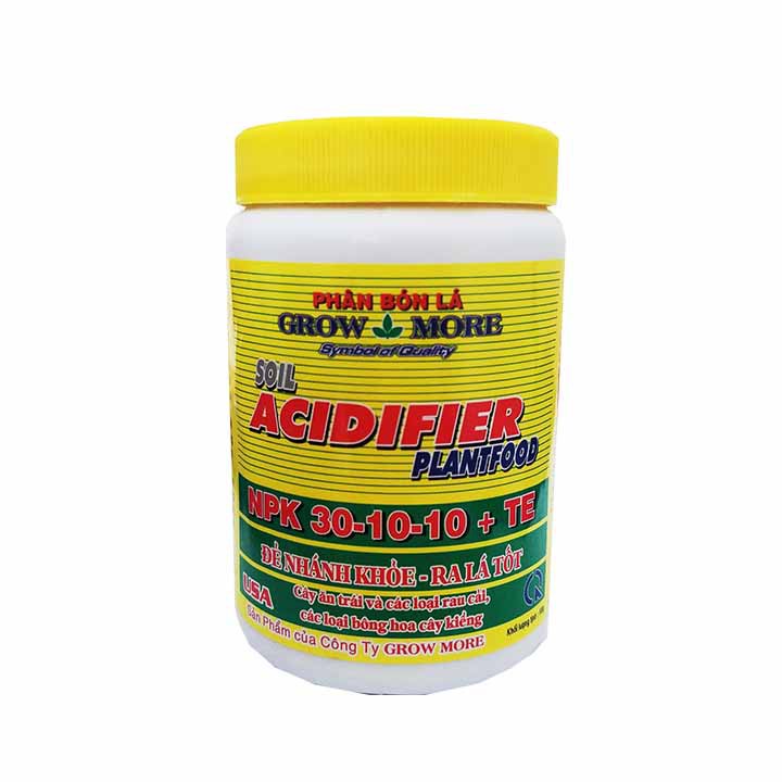 Phân bón lá GROWMORE (USA) Soil Acidifier NPK 30-10-10 + TE - ĐẺ NHÁNH KHỎE, RA LÁ TỐTLọ 100 gr. Pha 5-10gr cho mỗi 8 lít nước, phun đều lên lá, thân cây và quanh gốc. Tránh phun khi trời mưa.