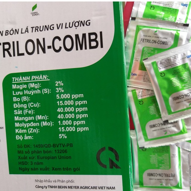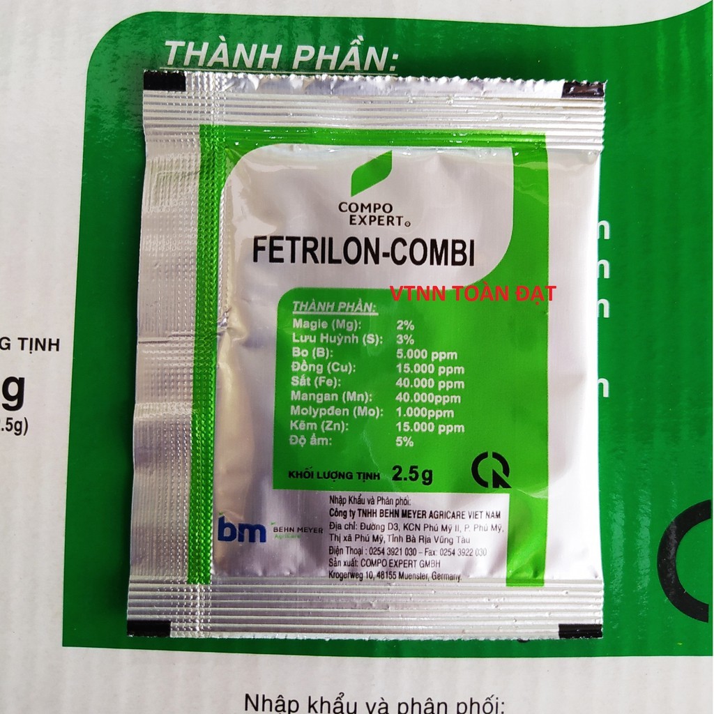 Phân Bón Vi Lượng Fetrilon Combi (2,5gr)Phân bón vi lượng qua lá Fetrilon-Combi nhằm bổ sung các chất vi lượng giúp cây trồng khỏe mạnh tăng sức đề kháng và phát triển tốt.