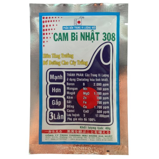 Giới thiệu Phân bón trung vi lượng Cam Bi Nhật 308 40g