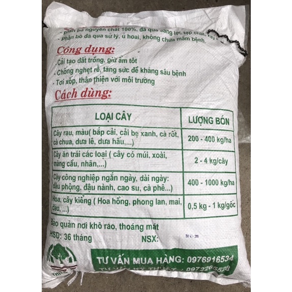 • Phân bò nguyên chất 100%, đã qua sàng lọc tạp chất, xay mịn
