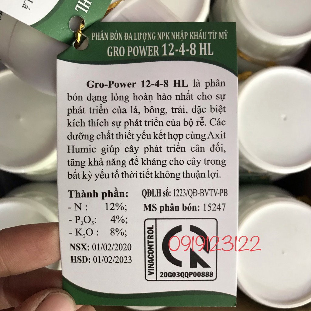 GRO POWER 12-4-8 - kích thích sinh trưởng của MỸkích ra rễ , bật chồi mới , lá mới