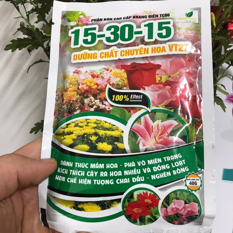 Nhà cửa & Đời sống > Làm vườn > Phân bón || Phân bón 15-30-15 + TE - Dưỡng Chất chuyên hoa VT27 gói 40gCòn hàng