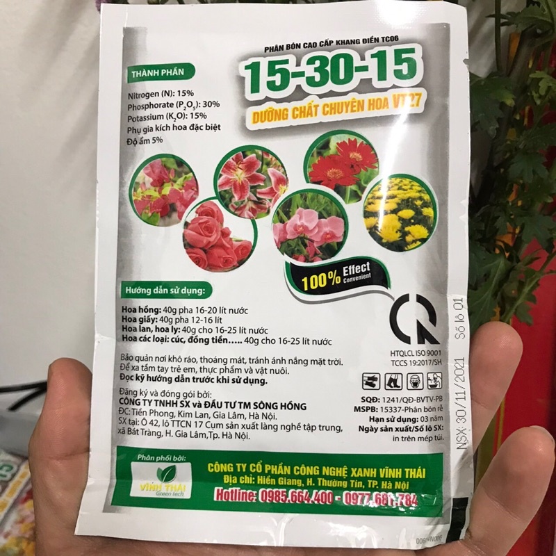 Giới thiệu Phân bón 15-30-15 + TE - Dưỡng Chất chuyên hoa VT27 gói 40g