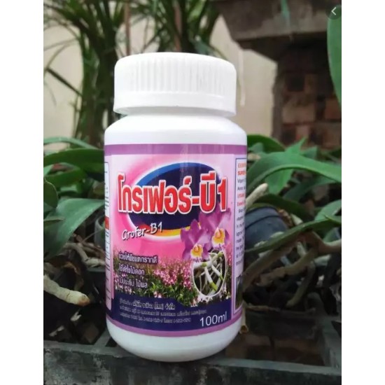Phân bón Grofer B1Phân bón Grofer B1(Nhập khẩu từ Thái Lan)THÀNH PHẦN: Vitamin B-1 và Alpha naphthalene acetic acid, chelated, axit photphoric• - Là loại B1 tăng trưởng đều (lá, chồi, rể, thân, hoa), tưới vào bất kỳ giai đoạn nào của cây.• - Để ngâm lan rừng khi mới mua về trồng hay dùng để xịt định kì để kích thích cây lan sinh trưởng nhanh, ra rễ nhiều, khỏe mạnh, cứng cáp và nhiều hoa.- Liều dùng 2cc/1 lít nước