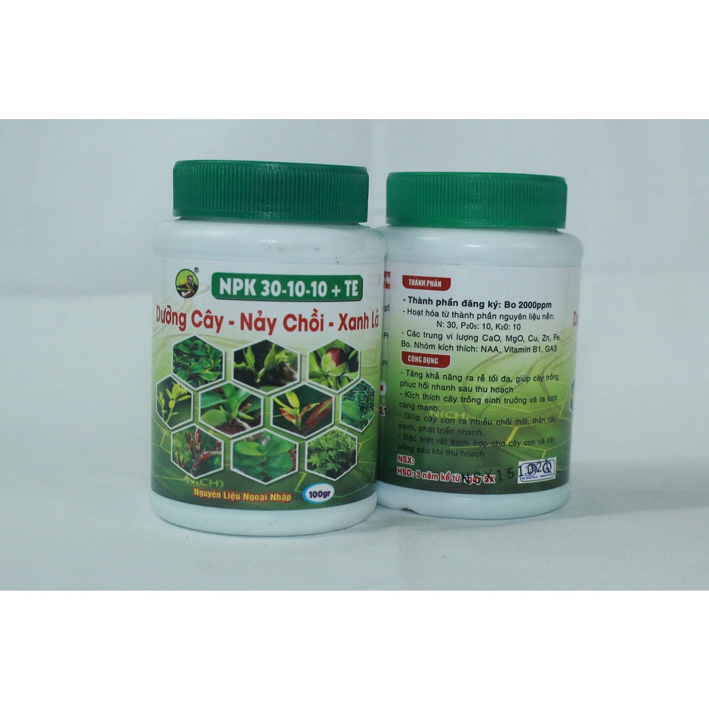 Phân bón cây cảnh NPk 30-10-10 + TE Nảy chồi xanh lá dưỡng cây hũ 100g