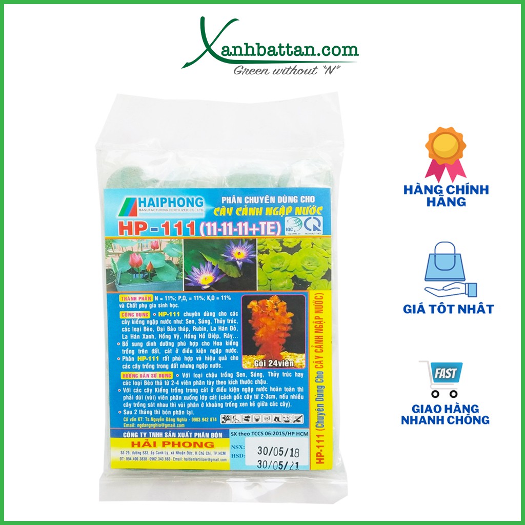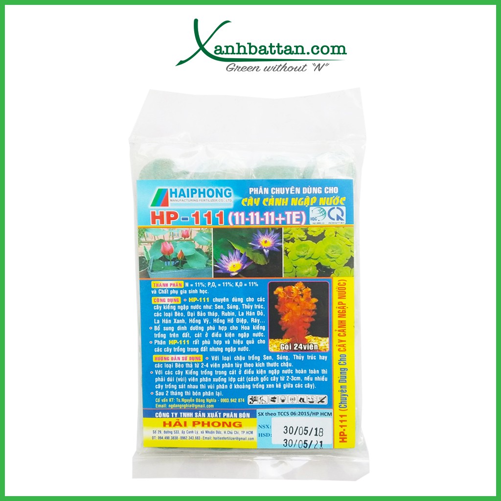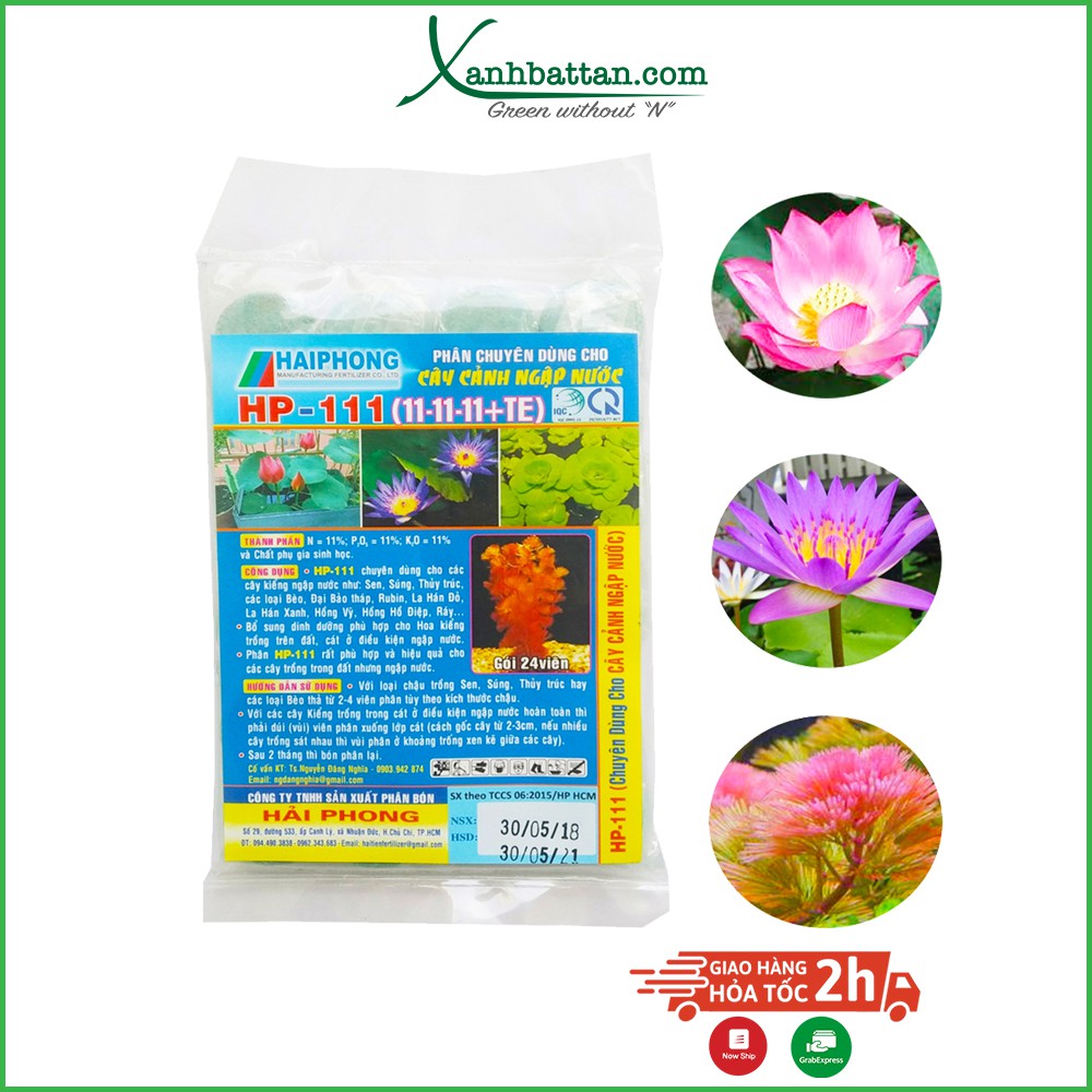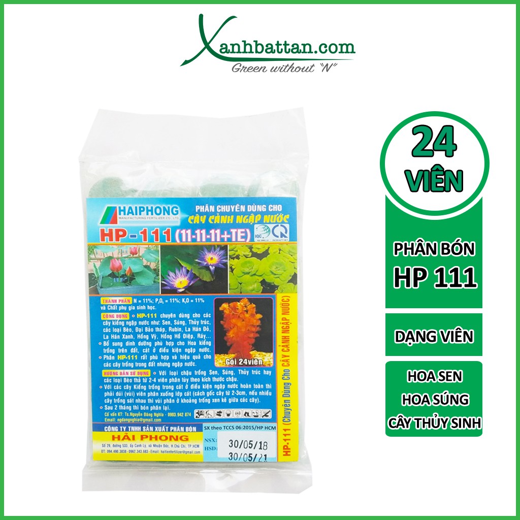 Được sản xuất với thành phần chính là NPK, hàm lượng trung bình khoảng 11% rất thích hợp với nhu cầu dinh dưỡng khoáng của các loại hoa sen và hoa súng. Phân bón HP 111 được rất nhiều ngưới ưa chuộng và sử dụng cho các chậu hoa sen, súng trồng tại nhà