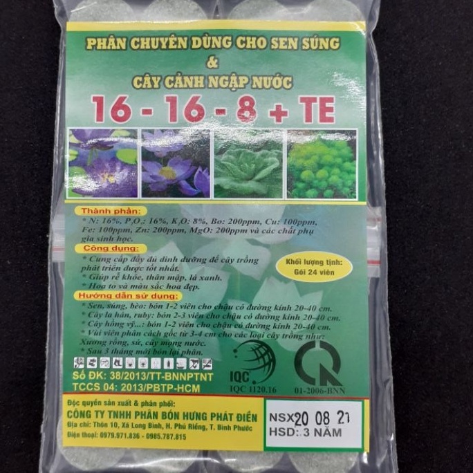 Nhà cửa & Đời sống > Làm vườn > Phân bón || Phân bón chuyên dùng cho cây thủy sinh như cây sen, cây hoa súng và các loại cây sống trong nước khácCòn hàng